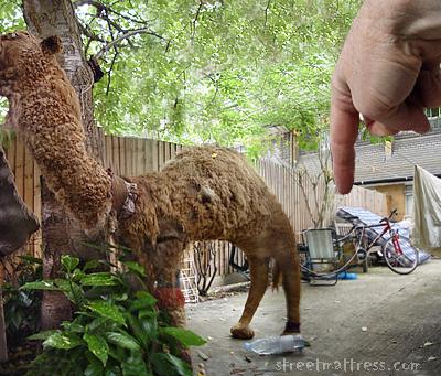 I spotted the matt over the fence, nudged open the gate and saw the camel. It was tricky getting them both in the same frame, so this is a Photoshop tour de force using eight separate photos plus some desperate cloning to fill in a big gap at the top. I think I got away with it, though. (Thank you to the camel's keeper, a Kiwi, who didn't mind me faffing about there for 10 minutes. When I asked if I could take the pics she said, "Yeah. Go for yer life," which thankfully doesn't mean "run for yer life".)