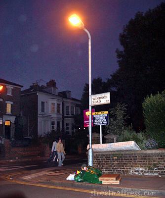 Went to this location as the result of information received. (Thanks, Carol.) The three women seen crossing the road went into the house and stood discussing the mattress for a few moments. They didn't seem to realise I'd just taken its picture, despite the flash. I thought of asking them to point, but I was in my car and it was nearly dark, so I thought better of it.