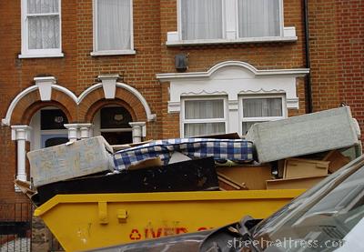 | OK, the mattress is in or on the skip, but having thought of the title I had to submit it. |