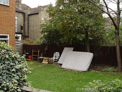 | This garden has had some low-grade junk in it for months and months. I knew a mattress would appear one day, and today was that day. |