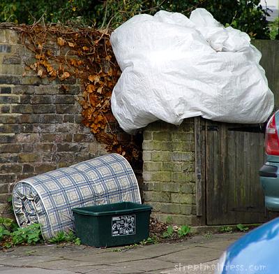 | A mattress and a mysterious giant bag. What could be inside it? (The bag, that is.) |