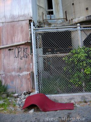 | a nice camping matt left to rot in an rough industrial landscape |