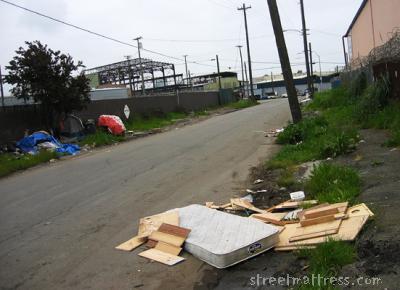 this street is a favourite dumping ground, making it a prime location for homeless people to set up camp and who will then gather usable materials and take them to recycling depots