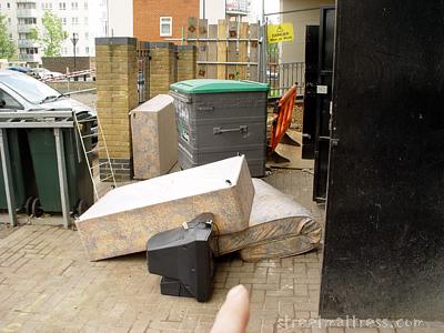 Both bed and TV are quite worn out by their owner's lazy habit.