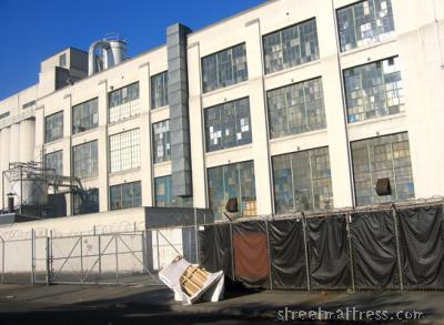 west oakland use to be home to numerous canning and breakfast cereal processing plants. not sure what went on in this factory in days past, let alone today. but whatever it is the weight of history broke the back of this poor matt.