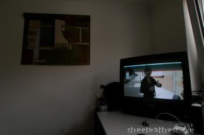The art against the wall, is another brick in the wall.It's my final exam for architecture.It's a maquette of a self-created funeral-place with several buildings seperated by water burried in the landscape with concrete walls reaching out to enter the place.They never understood what I meant until they saw my B&W pics of NY that year.