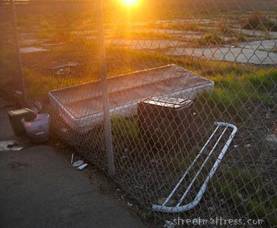 this matt has seen a few sunsets. it's still there and will probably remain so as it is literally on the wrong side of the fence half a block away. an opportunity to record a matt degrade dust to dust, day by day,