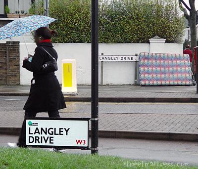 Freezing weather has followed gales, but cruel people continue to put mattresses out on the street. A new pattern on me, too. The wind seemed to have caused the sign to slip down the pole.