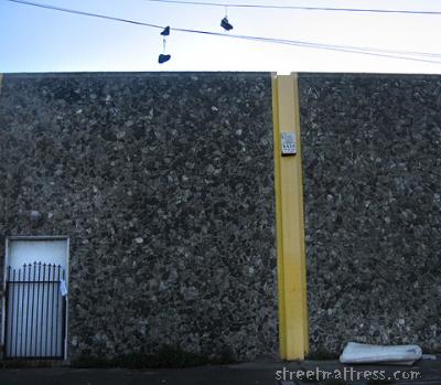 there are many myths about shoes hanging from wires: presence of crack house, sign of contempt, gang-related murder, commemorating a dead gang member, marking gang territory, kids goofing off... want to add to the list?