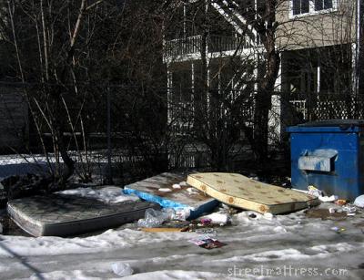 I'm teaching a workshop on digital storytelling with 12 Inuvialuit youth as part of a pilot alternative education program. Was last up in the arctic in 2004 and Inuvik in 2001, before me SM life. I should look back at my photos from those trips and see if I didn't inadvertently take a mattress shot. While up north I would routinely go to the dump to see what people were throwing out and to see if any bears or wolves were hanging out there.