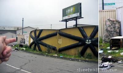 little wedge of property along Mandela Parkway (old Nimitz Freeway that collapsed in 1989) where the owner has surrounded it with shipping containers and these weird massive and curved steel plates.