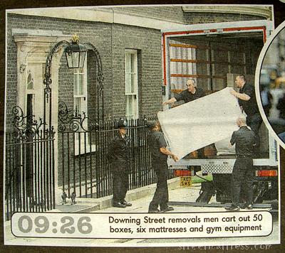From the Daily Mirror, the best Blair mattress pic of all today's British daily papers.