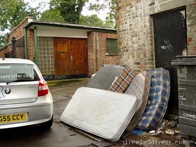 | Back at the site of "Check Mates" from five days ago, and two more matts have joined the fun. Reverse angle, of course. |