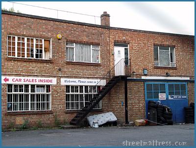 This used-car sales yard is normally full of vehicles, and they've probably been obscuring this matt for ages. I wonder where they've all gone. Don't say "inside".