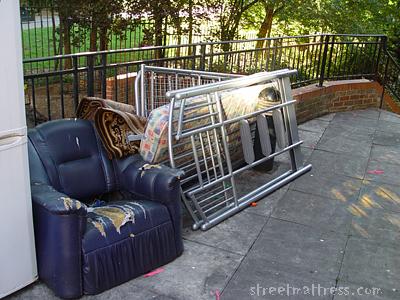 | Reflected sunlight strikes a mattress in Crown Street. |
