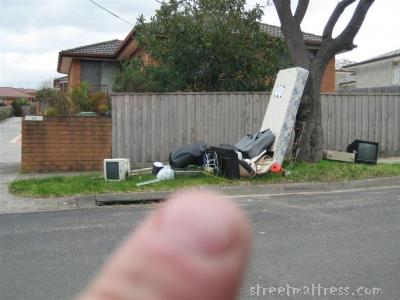 | THE NOTE WAS FROM THE OWNER OF THE STREETMATTRESS COMPLAINING HE PAYED TO GET RID OF IT AND NOT THE REST OF THE JUNK PEOPLE HAD DUMPED THERE |