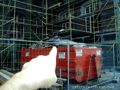 The building used to be a boy school with dormatories (if it is a coorect word) and is now under restauration. The original building is a copy of the Amsterdam Central Station, interesting way of saving costs on an architect, but there never was a station in Maasmechelen.