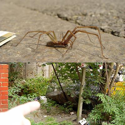 Spidey had been kicked to the kerb close by where the matt was. You can see the bit of card that probably covered the container he was carried in. He seemed stunned. Apologies to any arachnophobic mattress-lovers. (Just for the record, the matt location absolutely stank to high heaven.)