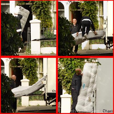 I didn't have long to wait. Soon I saw feet coming slowly down the stairs, backwards, clearly guiding something very big. That something was a whopping mattress, and I was on hand once again to document a matt's transition to a new life. I do like a nice sequence.