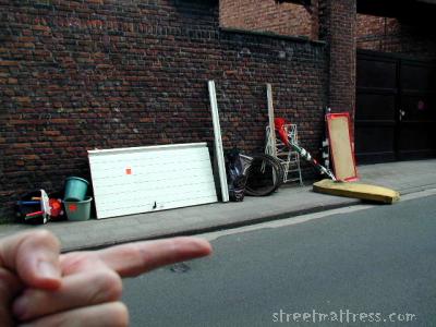 Now here we have everything, I nice wall, a slope, buckets, a door, bicycletyres,playthings, a dryinh thing, who sais "no future" when you can find it on the street