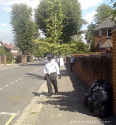 I'm standing next to the van this traffic warden is giving a parking ticket to. What happens next? She takes out her digital camera and for future reference takes a picture of the van. And of me...