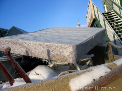 | the arctic matt gods shining down. next day someone had dumped a fourth matt into the trailer next to the previous three matts. |