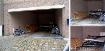| in a glimpse under a porch, the first picture looked as if it was an inside job, but nope, outside and on the street |
