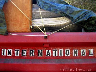 this truck had been parked in front of our neighbour's house for weeks the tarp completely covering what was underneath. then it went away for a few days, returning a couple of days ago to the same spot but this time with the tarp slightly open. should have known there'd be a matt or two underneath.