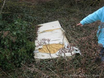 | once people know how to point, they cannot resist when they stumble on forgotten matresses in grey fiels, with a blue note |