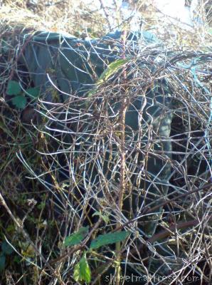 It was difficult to get any sort of a picture of this green folded and split matt. Behind a fence and overgrown with brambles.