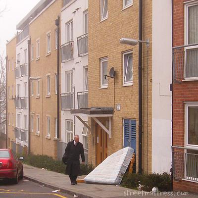 Well, maybe. I had been taking pictures of the matt for about a minute when I heard the sound of a large pole hitting the ground a hundred yards away. A long truck carrying an excavator had reversed into a telephone pole, breaking it off at ground level and causing it to crash down onto the very spot I might have been occupying, had I not stopped to photograph the mattress. True story.