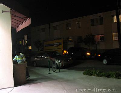 couldn't wait any longer to have them lift the matt up and out; emily was wating to go into the restaurant across the street. |