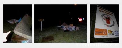 after midnight on a roundabout near the motorway. The words are quibbling.Opgeruimd means at the same time "cheerfull" and "made a clean sweep", the expression "opgeruimd staat netjes" meaning "a clean sweep is neatly", "opgeruimd straat netjes" was probably understood in a literal way.