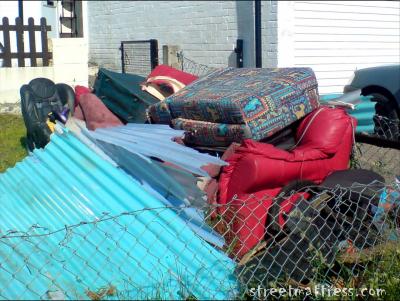 A nice collection of thrown-out furniture topped off with a fold-down bed
