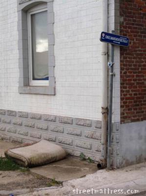 | engelmanshoven is a hamlet of klein gelmen, a hamlet of heers, hamlet himself slept on this mattress, that is why they put a blue spot |