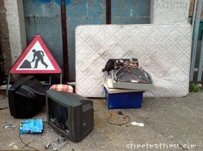 | Kara commented on 09.14.08 | | That's exactly what I was thinking. Looks like he's trying to open an umbrella against the wind. Is that the innards of a TV in front of the mat? |