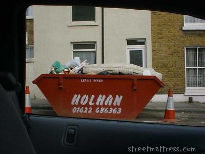 Yet another skip rider in the Gillinham area. Why is it that Mattresses always jump on a skip at the last minute? |