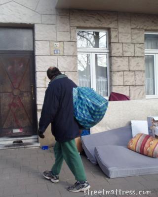 he looked as if he hesitated between throwing away something or picking something up, or exchange, he looked very unfriendly, but perhaps he has his reasons