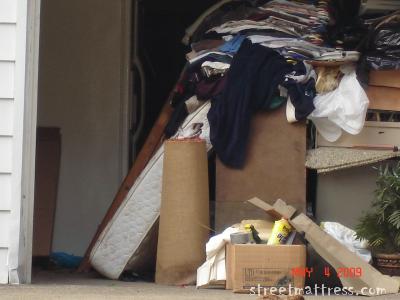 This mattress was in a man's Garage, we drove by several times but he was outside nearby cutting his grass. This was a hit and run picture,Alice snapped the picture quickly and I drove off.