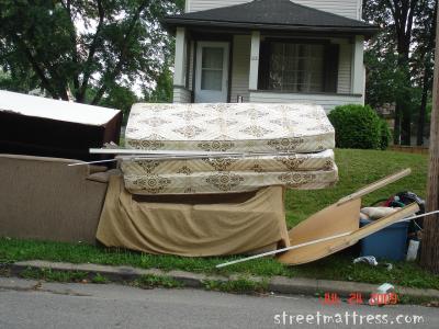 | This is another eviction on the next street over from us. 3 matresses doing a balancing act. |