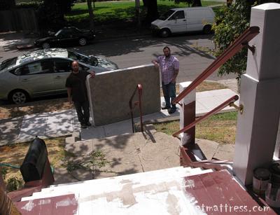 our neighbour's matt and maureen had a baby bot last week. Prior to that they were getting rid of their old box spring and mattress. We told them we would help them get rid of them. So matt and his friend mike came a caling.