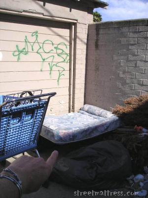 | I'm not sure I can make out what this says but it's clearly a reference to the mattress - see the arrows? |