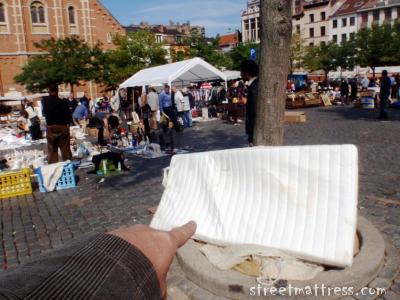 | Nearly missed the man, looking like a zombie, carrying the mattress by one ear, hiding under the P |
