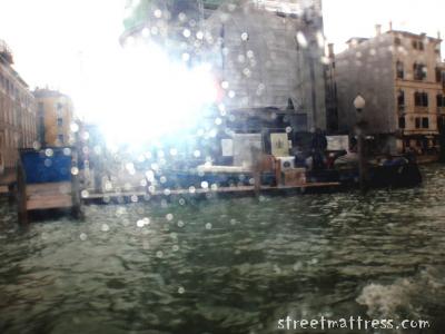 Coming out of the station, raining hard, we went inside the vaporetto instead of on deck, early in the morning, not that fast with my camera, when she said "ah a mattress on a boat". A very hasty picture, but the matt is there, flat on the boat, beside something looking like a washing machine, a new matt, ready to start a ride on the waterways of venice. I can only hope it passes, because matts are rare in Venice