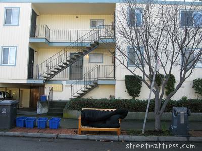 | the garbage has gone but the futon remains |
