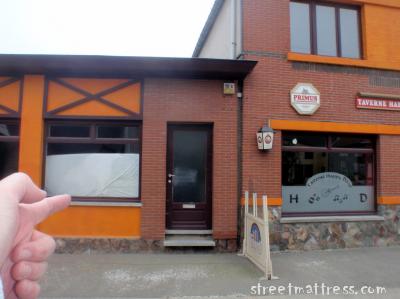 I took to biking in the morning (bicycle) and yess, matts to cover up a broken window in a closed café |