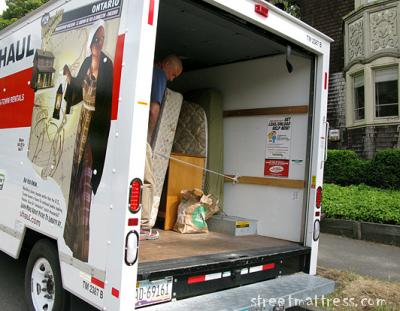 well this was a coincidence. biking around campus matt hunting i saw this uhaul and took a picture as i went by. the guy inside saw me taking a picture and stuck his head around and glared. as i passed i wondered if if might be sarah's dad. sarah is a uc berkeley grad student that took care of penelope during most days. i knew she lived on the street. sure enough when i asked and showed them the picture. it was her dad up from LA to attend her grad and help move her stuff home. weird