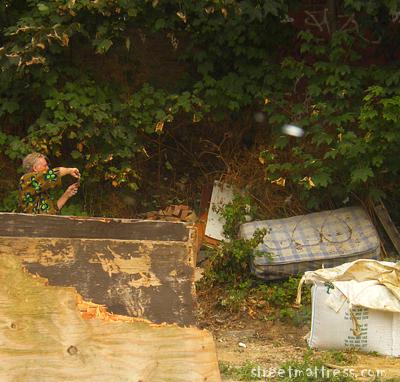 | Wim snaps a double-folded matt in the shadow of a lovely green-painted, iron footbridge over the railway line (not pictured). |