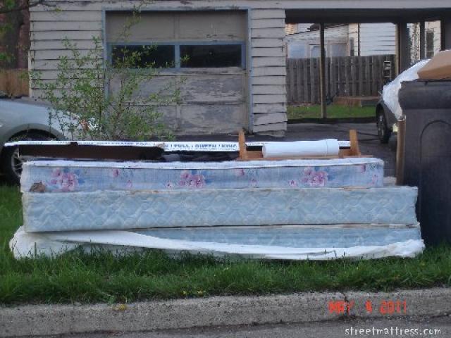 Alice & I pulled up next to these mattresses and snapped the picture. Just then a girl came out of the house and asked me what I was taking a picture of. I told her mattresses, she smiled and said OK! Sometimes I feel like a total jerk telling people that I'm taking pictures of their mattresses. I gave her one off my mattress cards and told her to check out this site. Thanks to you and your husband for being cool about it. If you visit our site, please leave a comment next to this picture. Thanks again!!!!