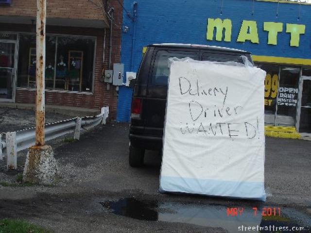Anyone need a job delivering mattresses? Mattress King on Market Street in Youngstown is looking for a driver......lol |